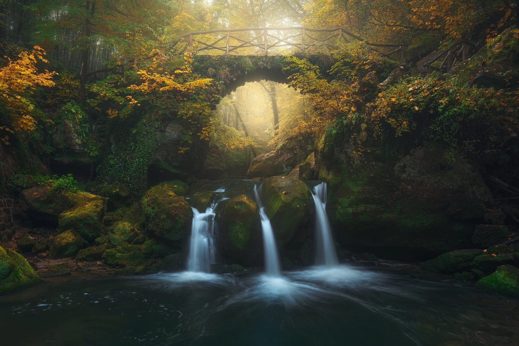 Using my own technique of separating autumn colors through combining hue masks with channel selections and levels, I brought out the colors that are usually only visibly in much stronger light. And to make this work, I also brought up the exposure selectively to make the scene cohesive. The dreamy look is achieved by not making the shadows too black and applying a little orton effect to the background.