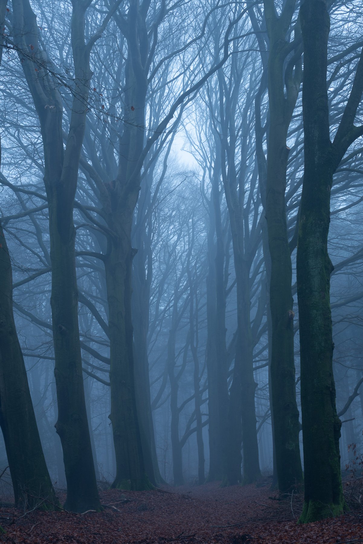 Another, finished image to illustrate why lens choice matters. A longer lens such as the one this was shot with (Nikon NIKKOR Z 100-400mm VR S) at 100mm, is useful to prevent large white parts of the sky coming in through the forest canopy. Those bright parts are made to be very intentional in this photo of Speulderbos here.