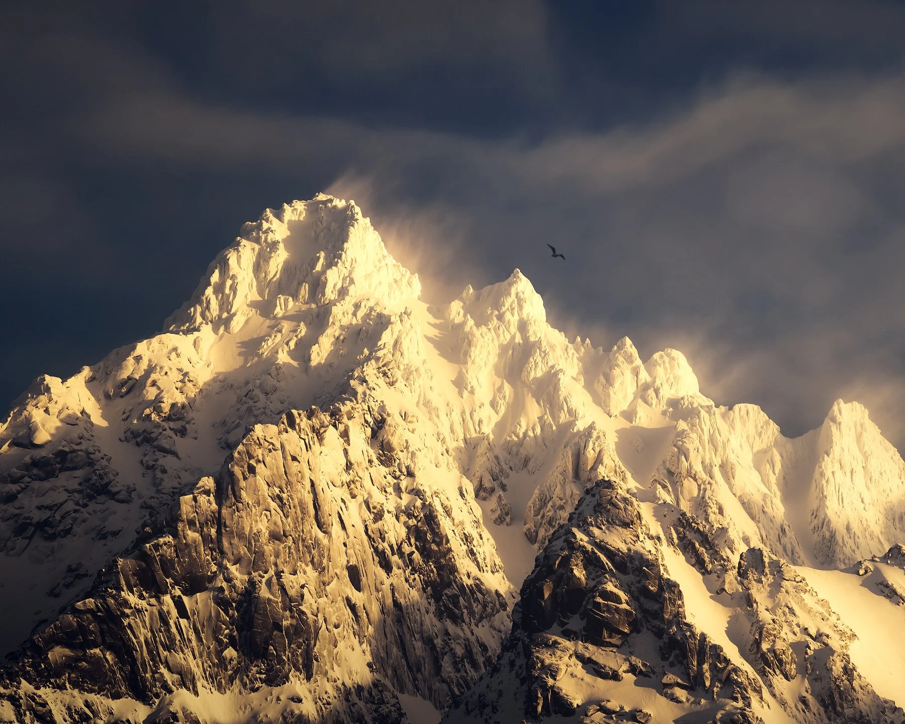 A ghostly image of a mountainous landscape. When we use the telephoto lens to frame a summit among swirling clouds with the odd bird circling in thermals, we are transported to a different state of mind.