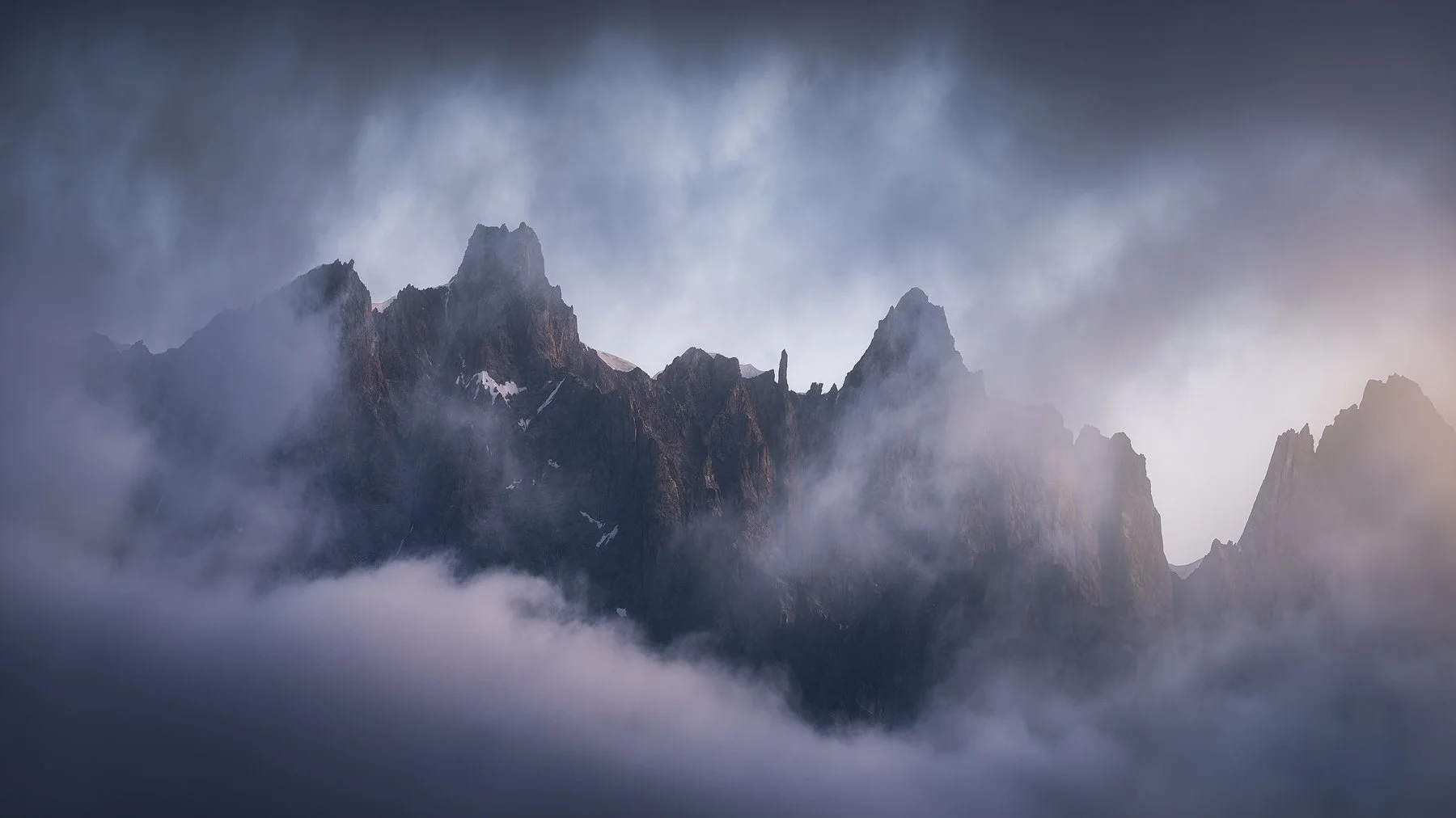 My favorite subject in front of the telephoto lens: moody mountains caught in swirling clouds. Learn countless state-of-the-art techniques in this highly detailed video tutorial for editing ghostly mountains in Photoshop.