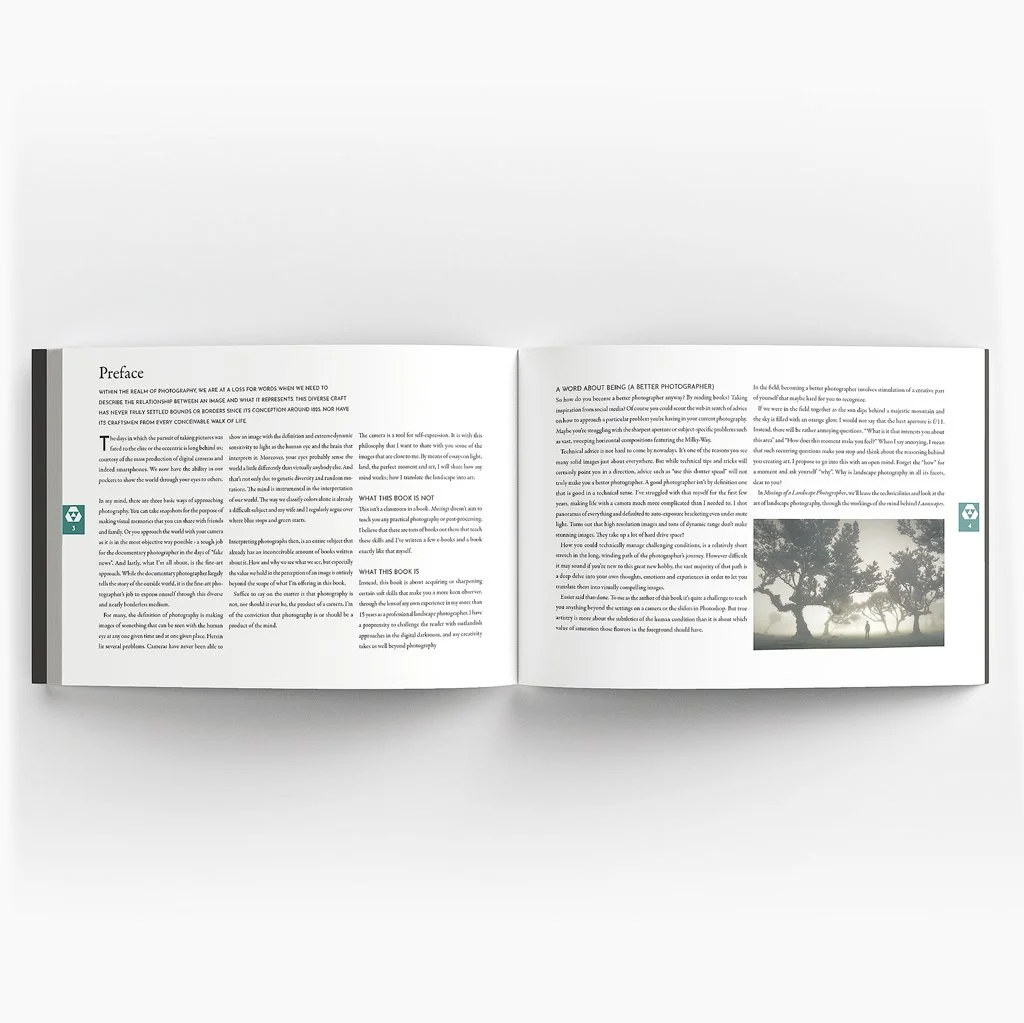 “Musings of a Landscape Photographer” tries to uncover a deeper truth about fine-art landscape photography. There’s a distinct philosophical trend among the essays that I’ve written over my career. Featuring over 100 high resolution images - my most precious work from the past decade - this book will help you understand what goes into the making of these moody and mystical images, accompanied through pensive, thought-provoking essays, categorized in 5 parts, titled ART, LIGHT, LAND, MOMENT & ADVICE. All with the primary goal to gain insight into my psychology; the most crucial and overlooked aspect of the resulting art. Musings of a Landscape Photographer captures the way I envision, photograph and post-process my images, making you a more original and better landscape photographer.